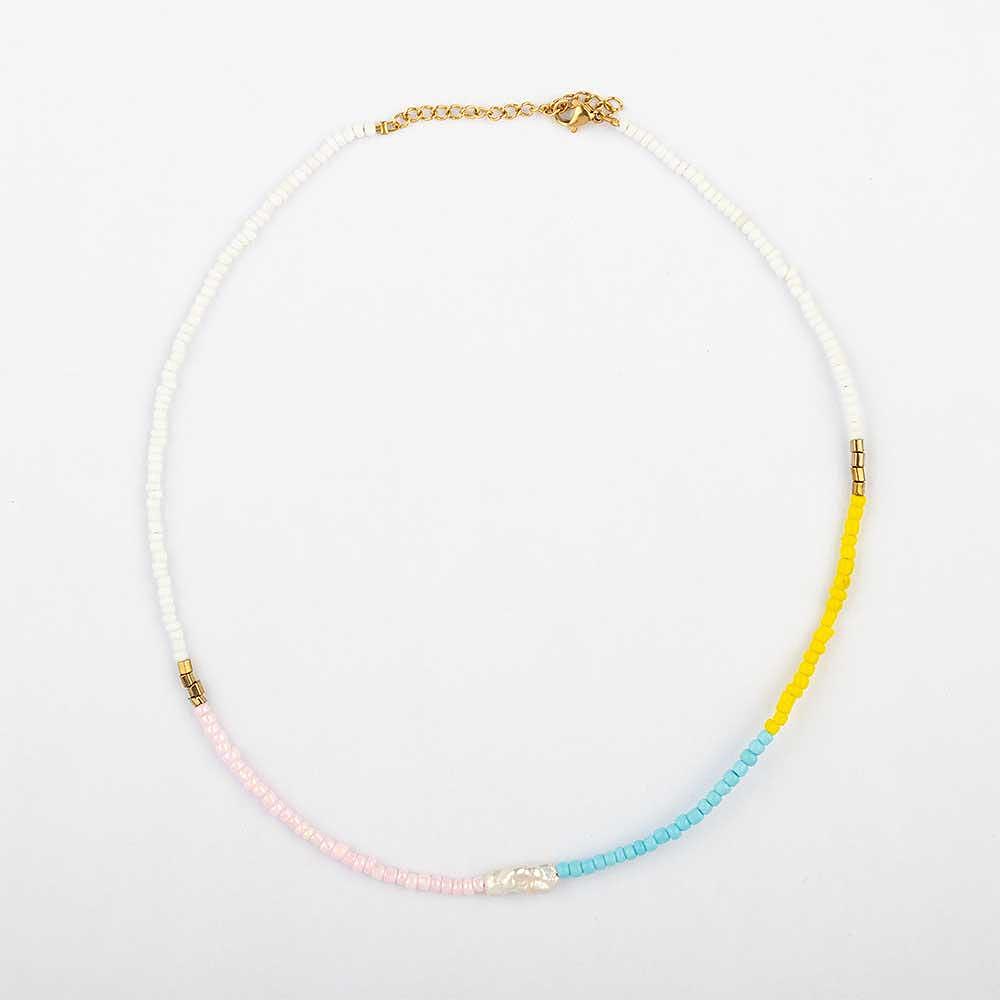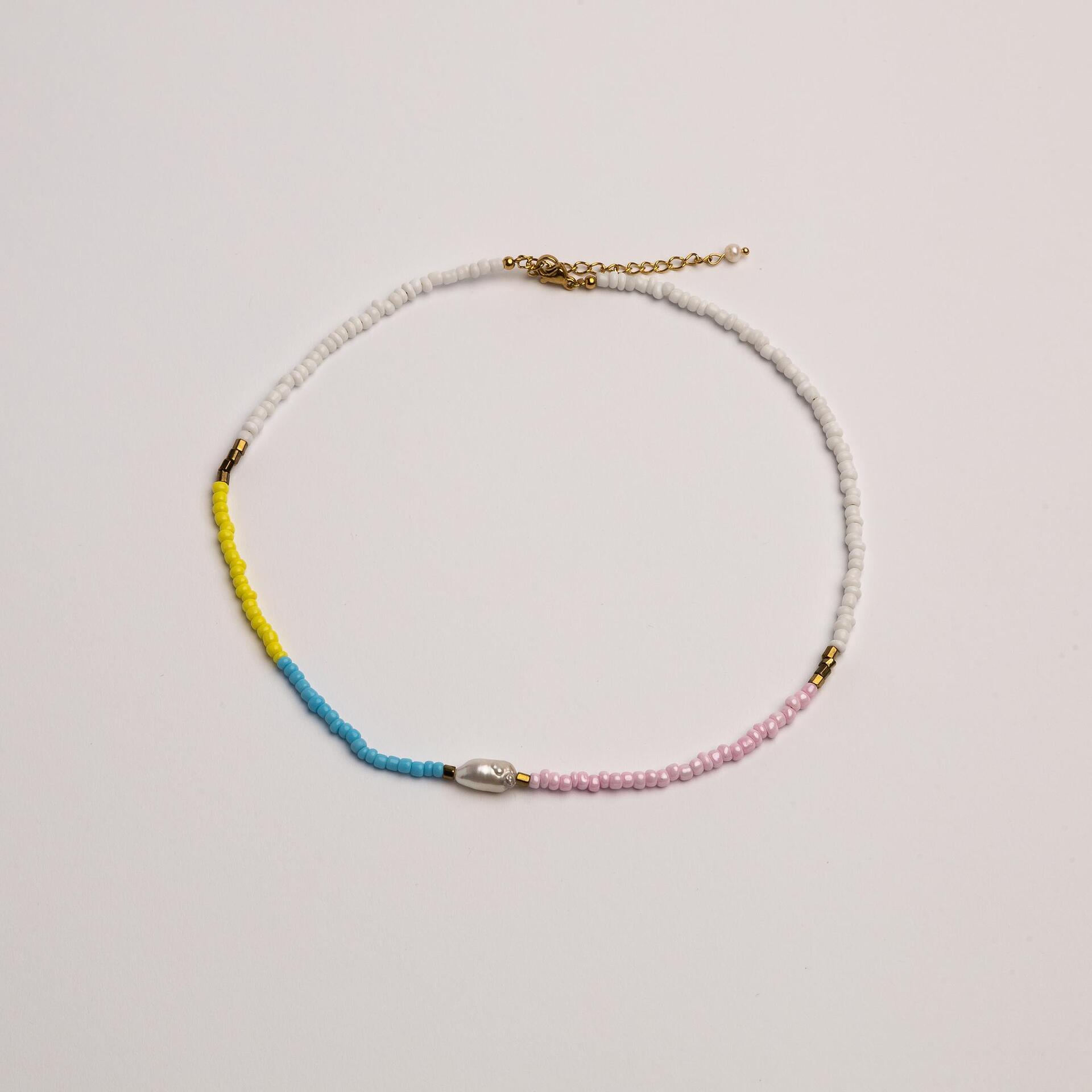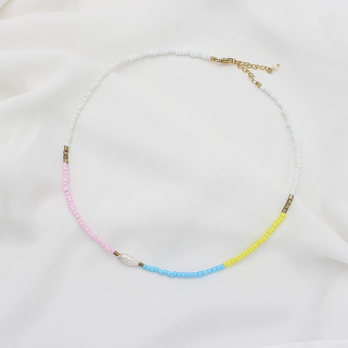 Красиво колие от колекцията “Born to have fun” с цветни мъниста и естествени перлички. Съчетай го с още бижута за готина boho визия или го носи самостоятелно, ако предпочиташ по-изчистена визия.