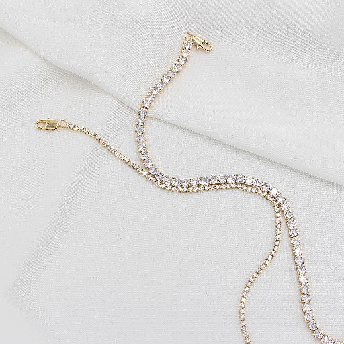 Колиета CRYSTALS GOLD са елегантен акцент, който допълва визията. Материалът е мед с камъни цирконии. Дължина на по-дебелото колие - 28 см с 10 см възможност за регулиране. Дължината на по-тънкото колие е 28 см с 10 см възможност за регулиране. Може да ги носиш заедно или поотделно, а защо не и в комбинации с други колиета, ако харесваш layering.